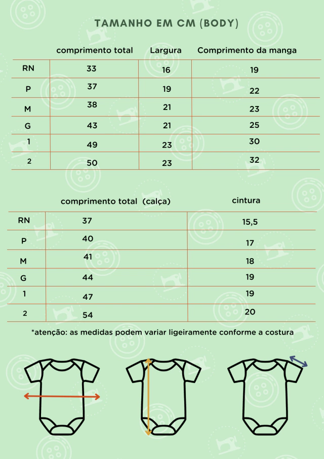 *as medidas podem variar de acordo com o desenvolvimento do Bebê